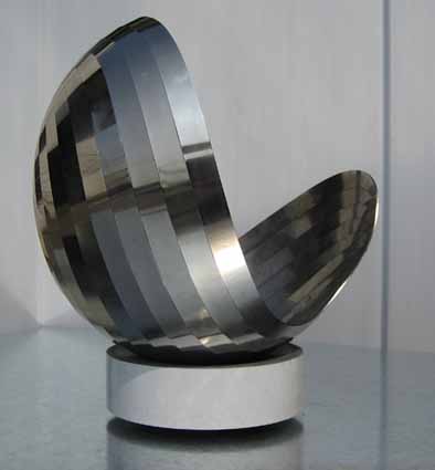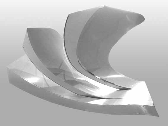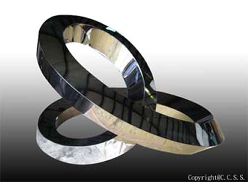 採用3D運算技術,計算出曲面,每一視角皆為不同之曲線,變化出無窮造型,適合辦公室擺飾或公共場所擺飾,具高度前衛設計時代感。