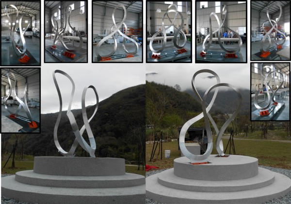 由數片S型不銹鋼片,經3D計算組合而成之球體,為精密之3D太極造型。